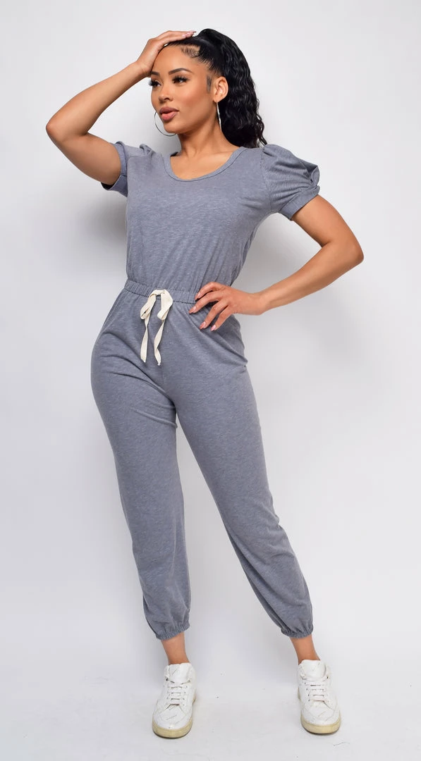 Emprada Loungewear Willa Grey Puff Sleeve Jumpsuit