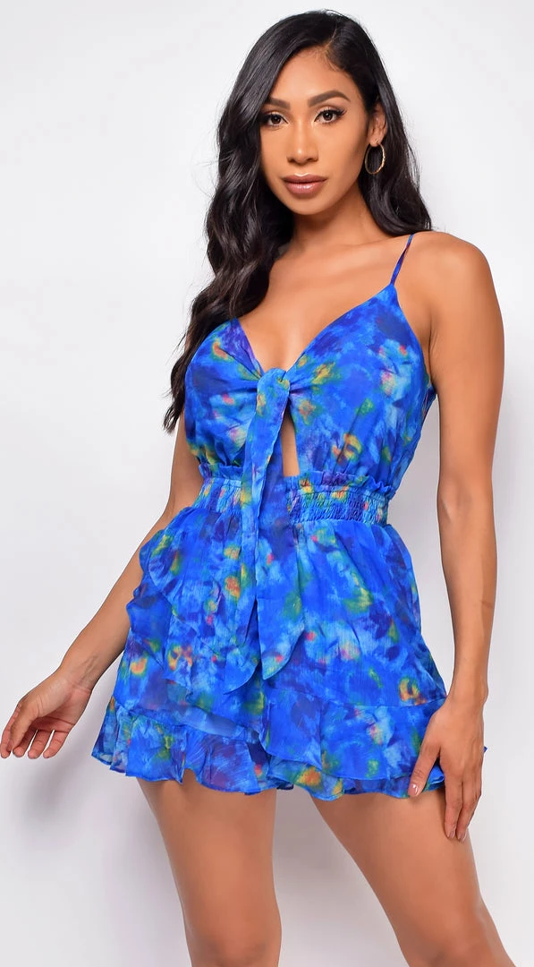 Be the first to review “Emprada Marbella Blue Multi Color Print Romper” Cancel reply