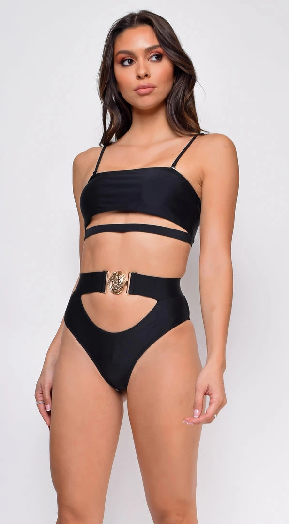 Emprada Marietas Black Bandeau Top High Waist Bikini Swimsuit