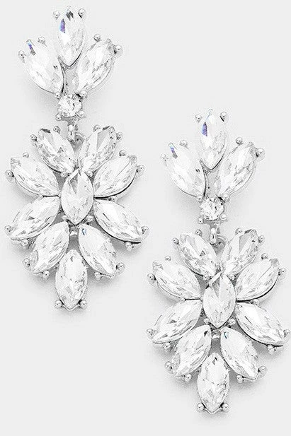Emprada Marquise Glass Crystal Oval Vine Earrings