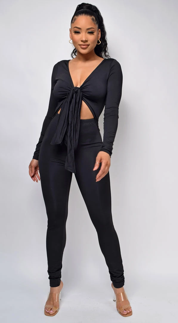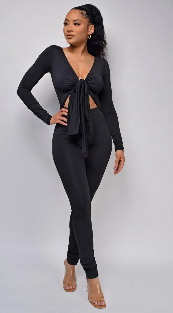 Emprada Meral Black Front Tie Jumpsuit Loungewear