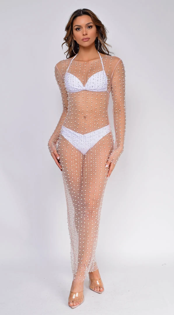 - Rhinestone pearl mesh dress
