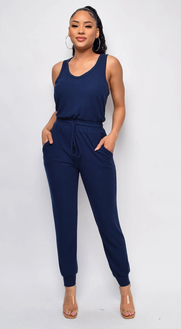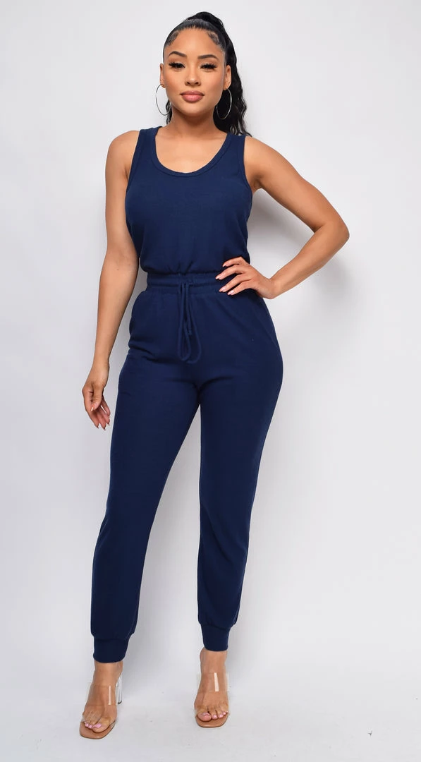 Emprada Mirey Navy Blue Drawstring Sleeveless Jumpsuit Loungewear
