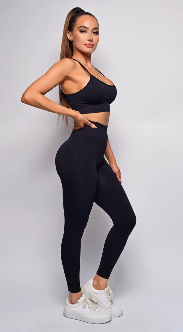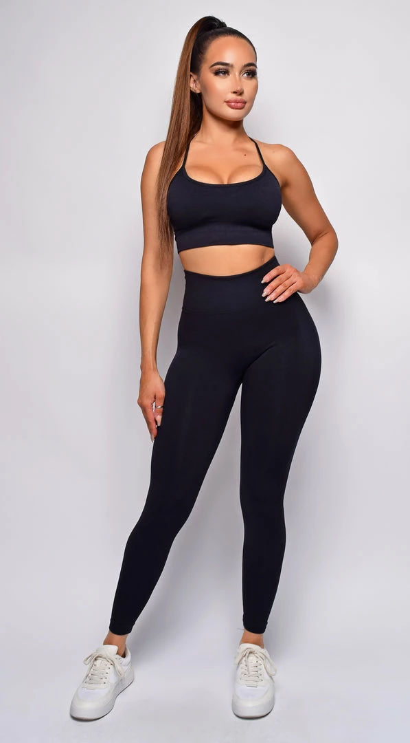 Emprada Movement Free Black Seamless Sports Bra & High Waist Legging Set Sets