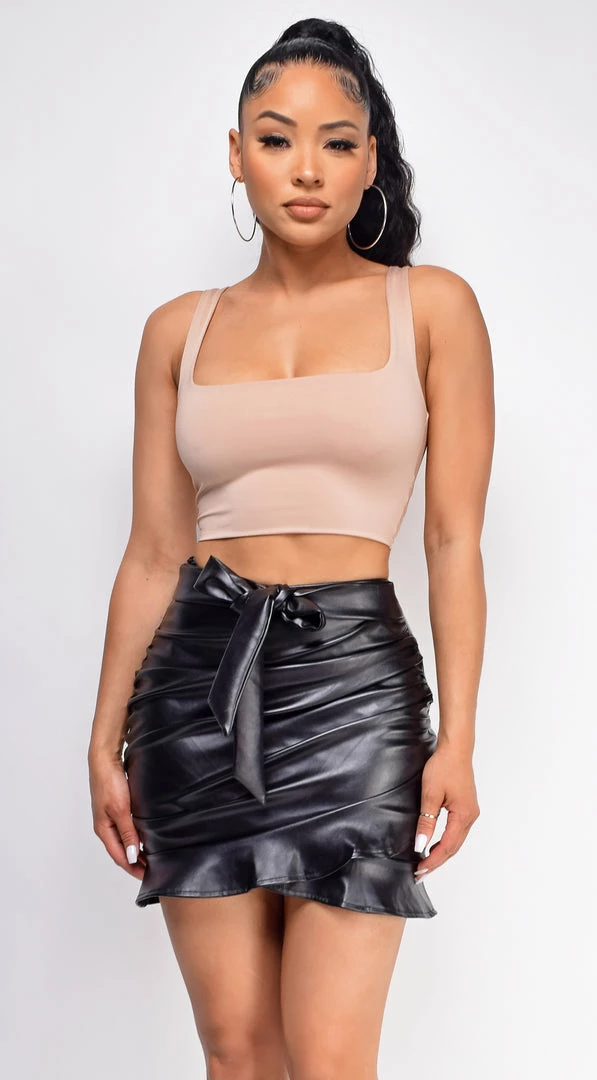 Emprada Myron Black PU Leather Ruched Skirt Bottoms