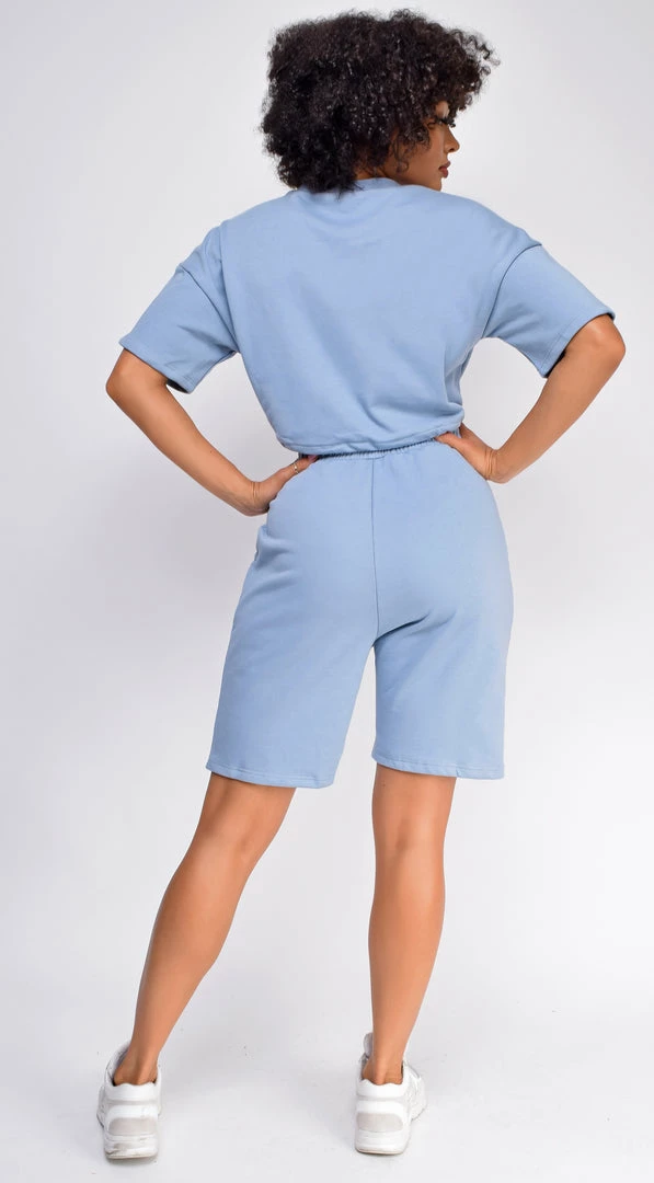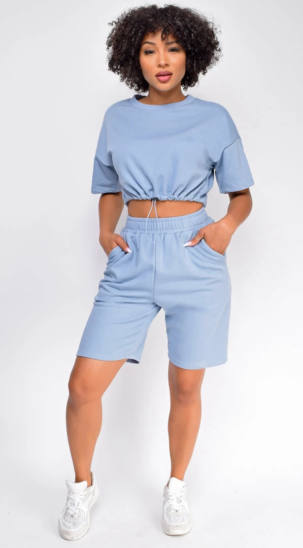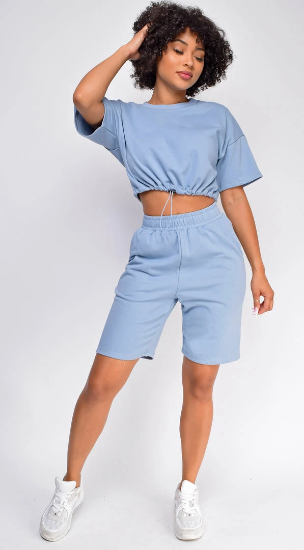 Emprada Nia Blue Crop Drawstring Top And Short Set Loungewear