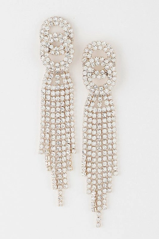 Emprada Rhinestone Gold Tassel Drop Earrings