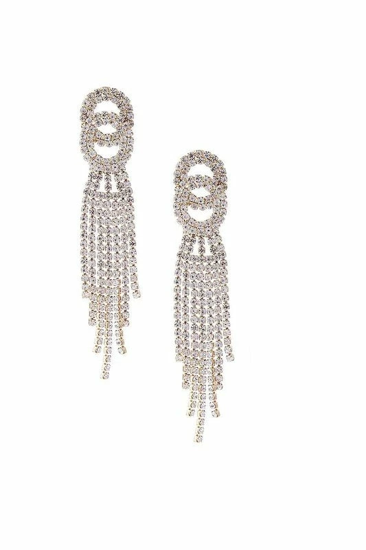 Be the first to review “Emprada Rhinestone Gold Tassel Drop Earrings” Cancel reply