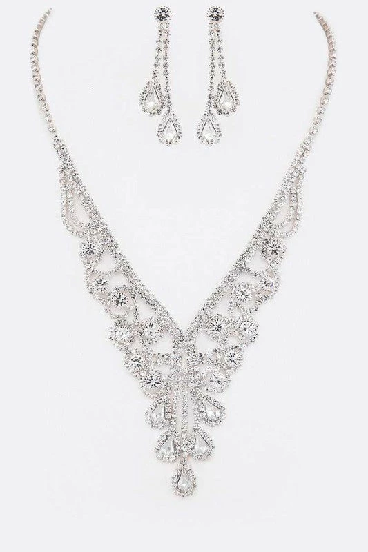Emprada Accessories Cubic Zirconia Double Teardrop Stone Accented Necklace & Earrings Set