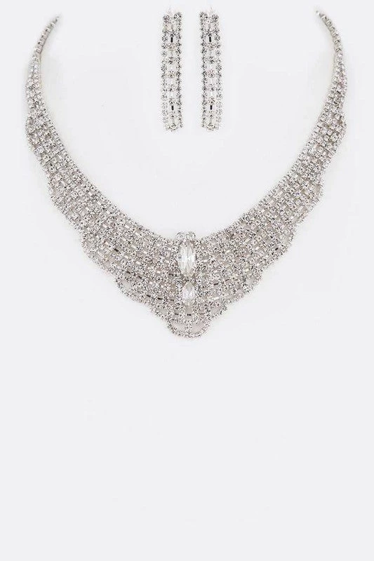 Emprada Rhinestone Silver Statement Necklace & Earrings Set