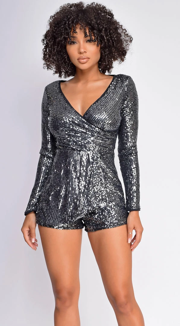 Be the first to review “Emprada Rosaria Grey Gunmetal Sequin Romper Jumpsuits & Rompers” Cancel reply