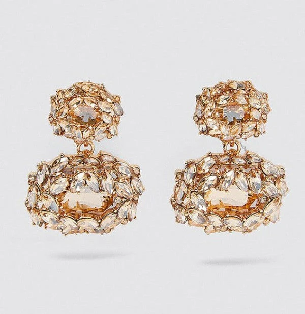 Emprada Round Crystal Gold Dangle Earrings Accessories