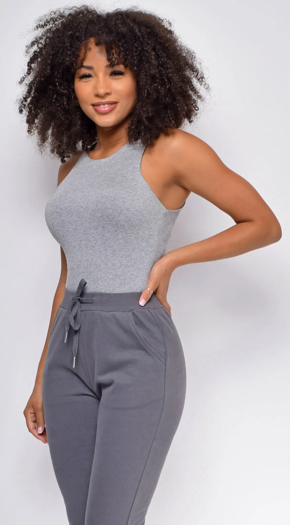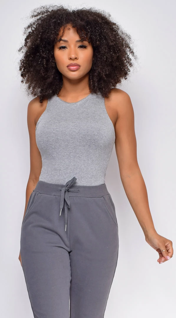 Emprada Seren Grey Sleeveless Racerback Bodysuit