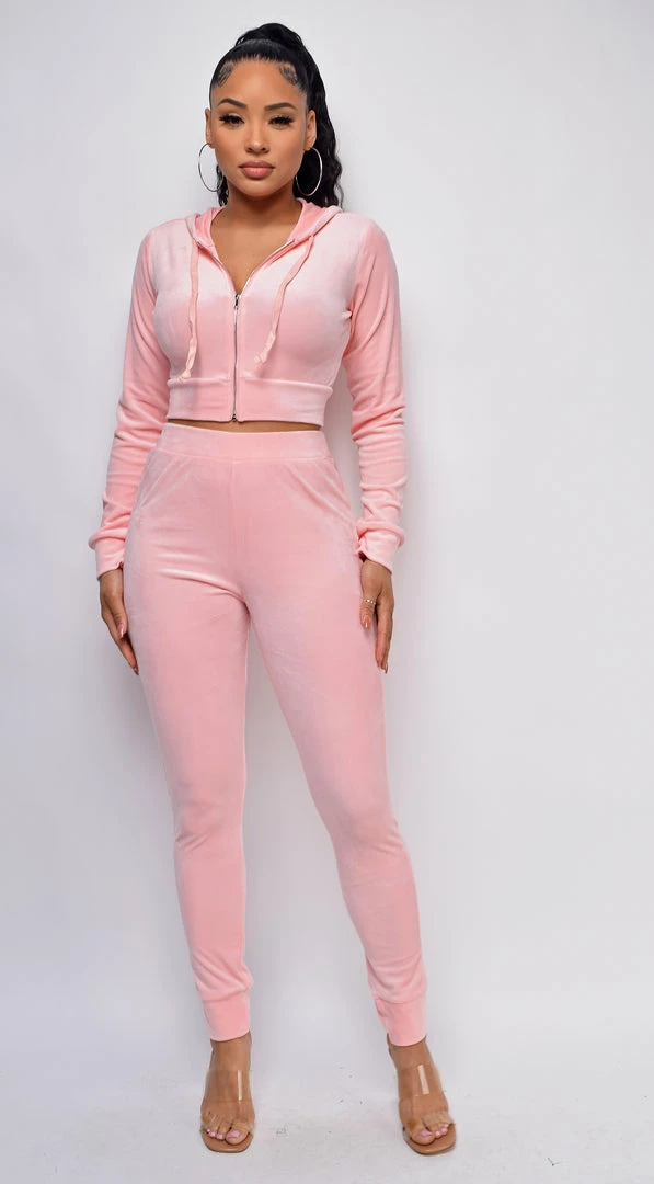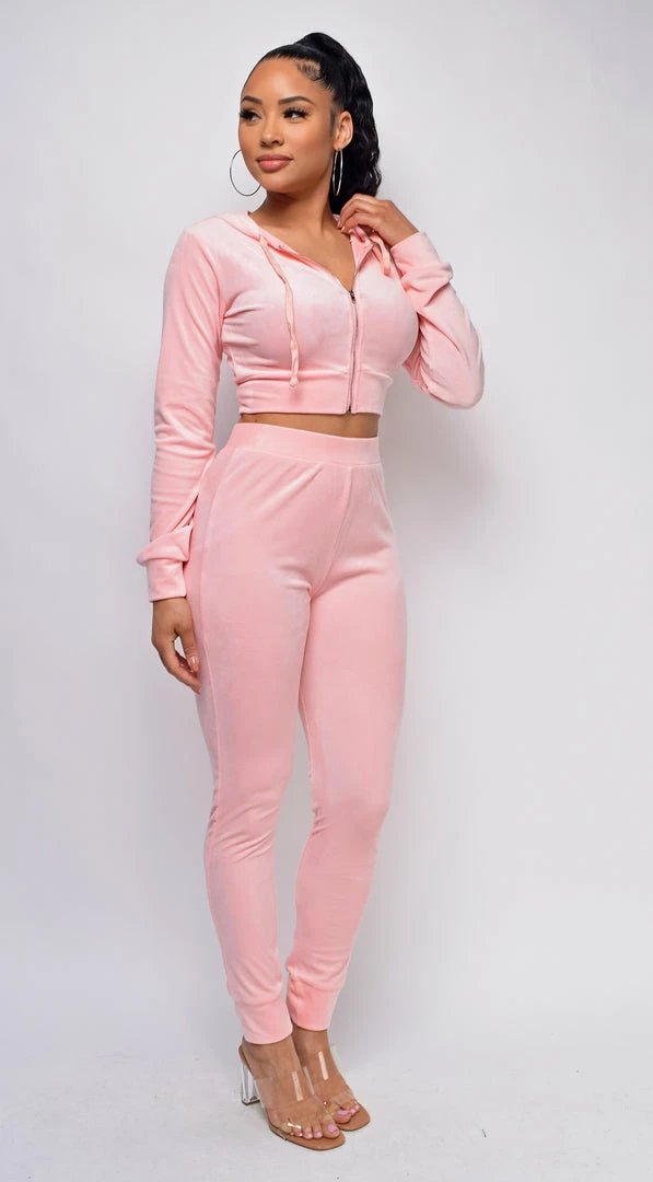 Emprada Simple Days Pink Velour Jacket And Jogger Set