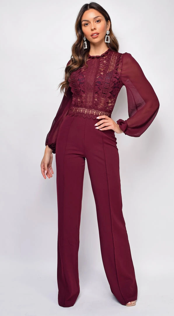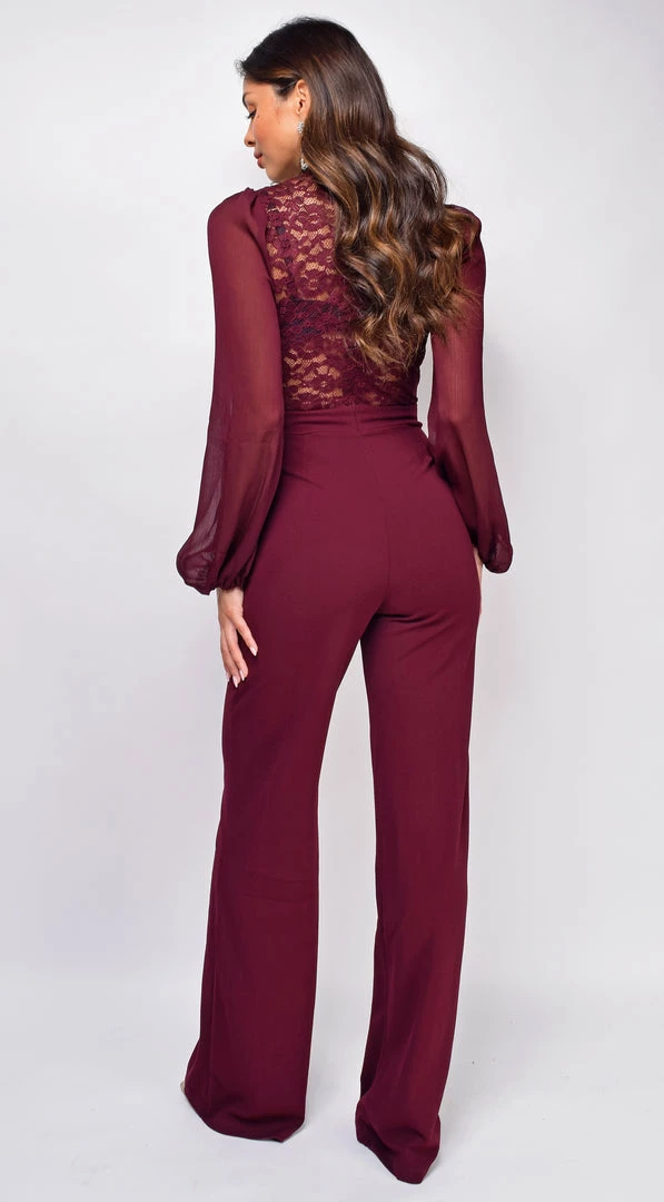 Emprada Skye Burgundy Red Lace Jumpsuit Jumpsuits & Rompers