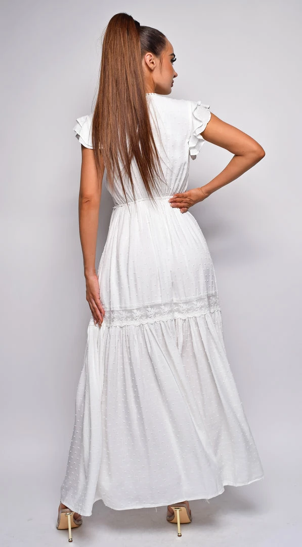 Emprada Stay True White Ruffle Sleeve Lace Trim Maxi Dress