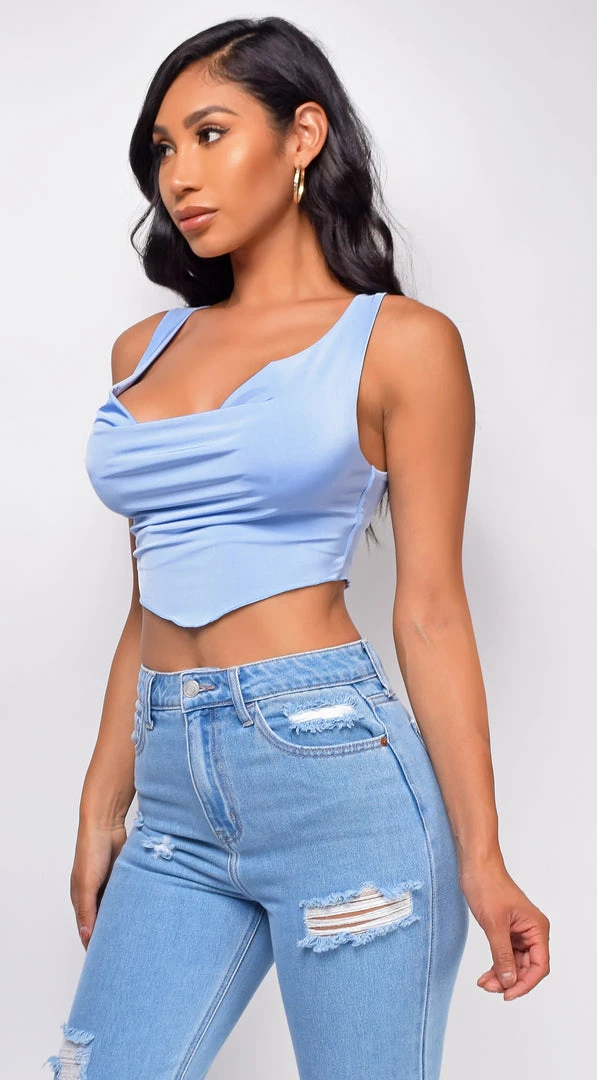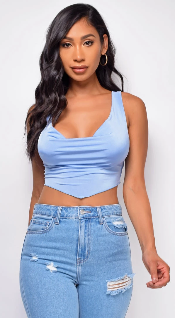 Emprada Tops Ariella Blue Cowl Neck Crop Top