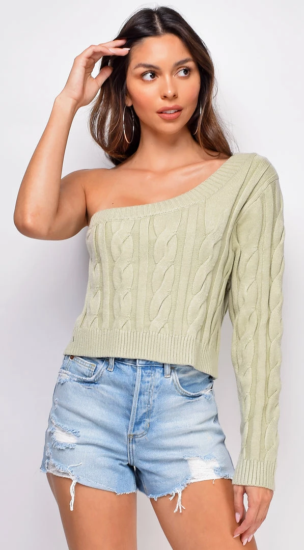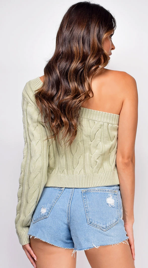 Emprada Tops Harley Sage Green One Shoulder Sweater Top