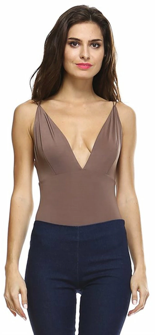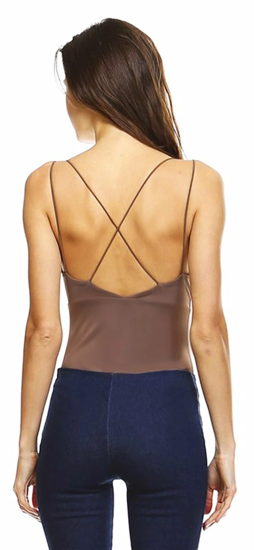 Emprada Tops Mocha Deep V Cross Back Bodysuit
