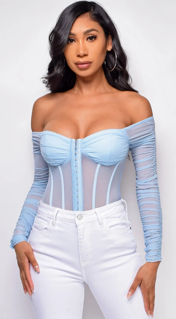 Emprada Tops Vieve Blue Mesh Corset Bodysuit