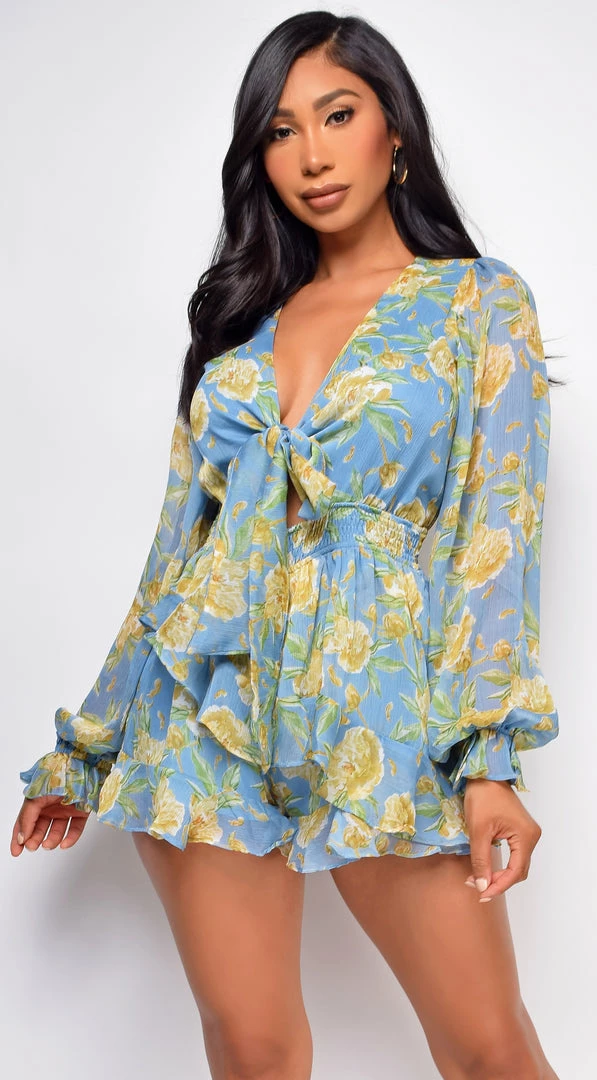 Be the first to review “Emprada Uptown Blue Floral Front Tie Romper” Cancel reply