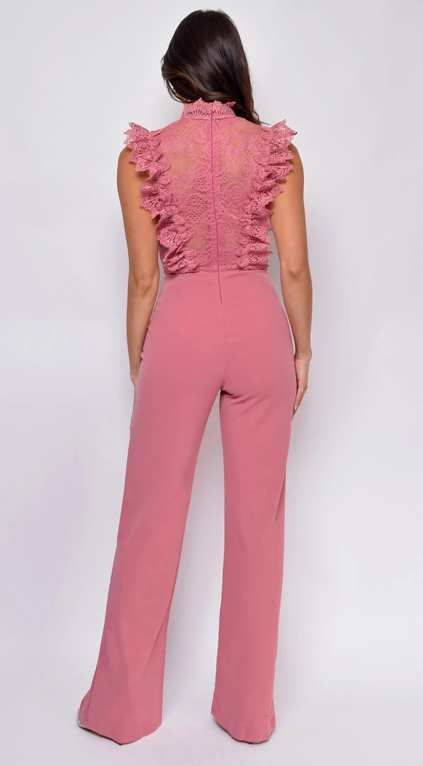 Emprada Vanna Pink Crochet Flared Leg Jumpsuit