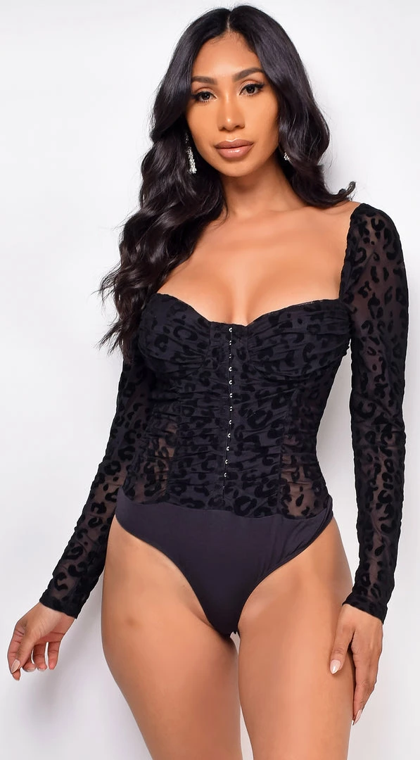 Emprada Velvet Dresses Dionne Black Velvet Flock Corset Bodysuit