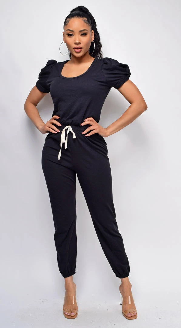 Emprada Willa Black Puff Sleeve Jumpsuit
