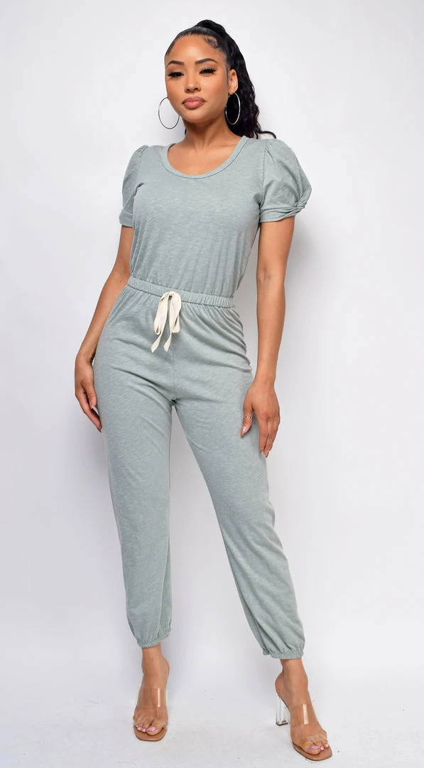 Emprada Willa Sage Green Puff Sleeve Jumpsuit Loungewear